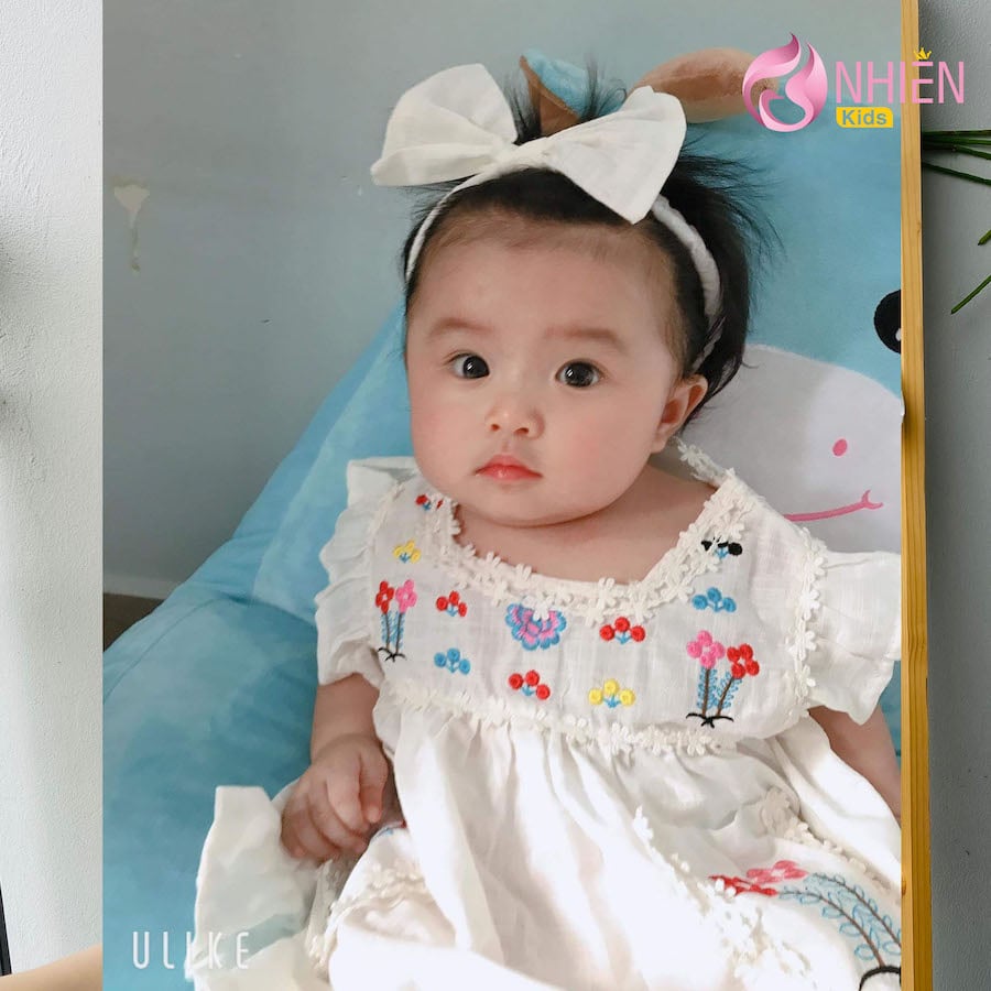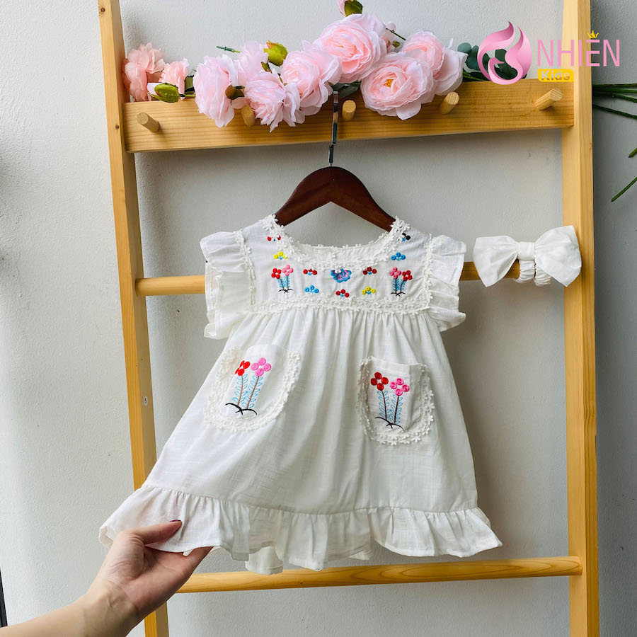 Sản phẩm váy thêu hoa cho bé gái gồm: Váy tặng kèm tuban